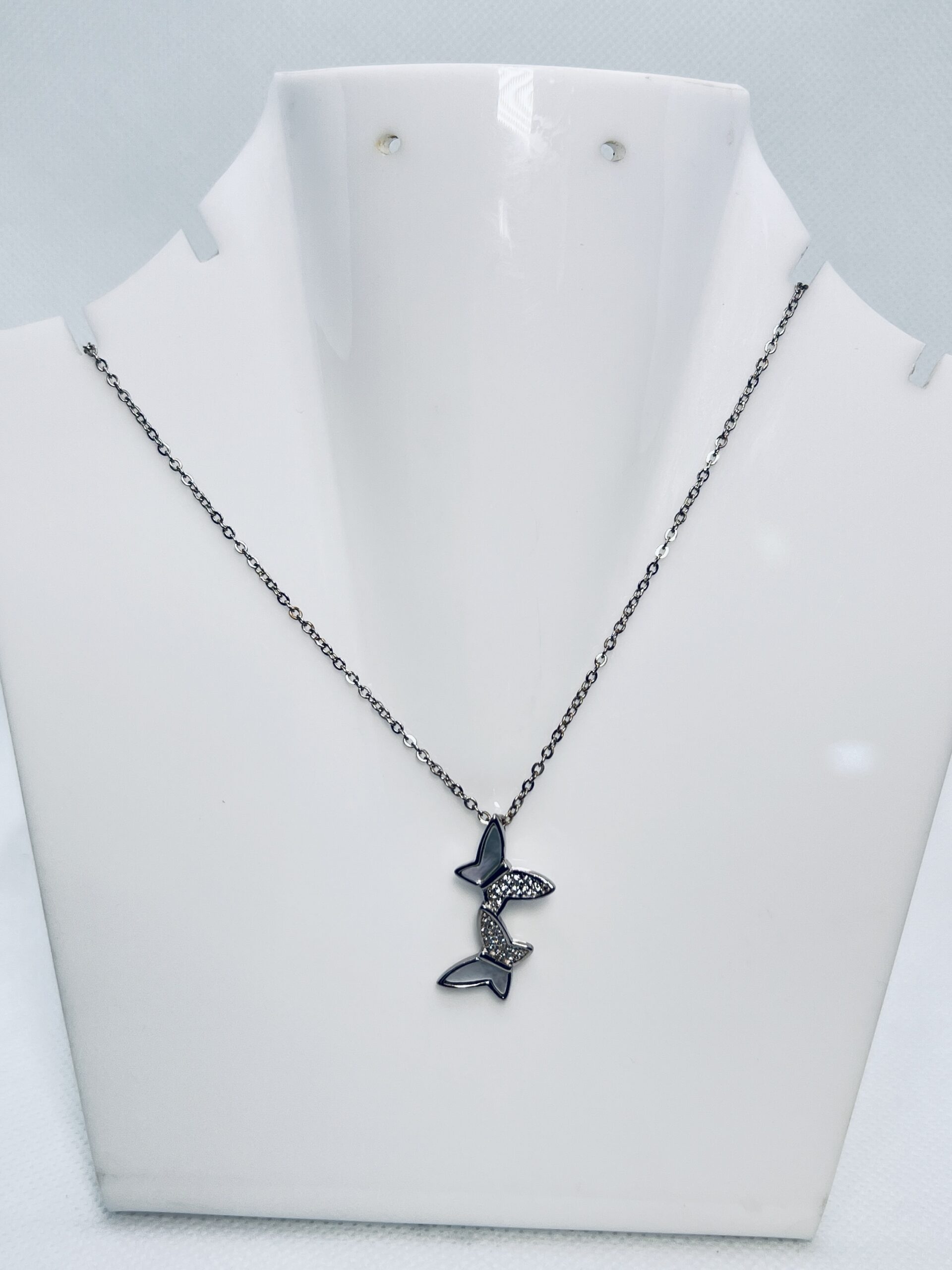 925 Silver Butterfly Pendant Chain – Elegant & Stylish Embrace elegance and freedom with this exquisite 925 sterling silver chain featuring a delicate triple butterfly pendant. Adorned with a mix of shimmering crystals and smooth silver finish, this pendant beautifully captures the grace and charm of butterflies in flight. Lightweight, durable, and skin-friendly, it is perfect for both casual wear and special occasions. A timeless piece that adds a touch of sparkle and sophistication to your jewellery collection.