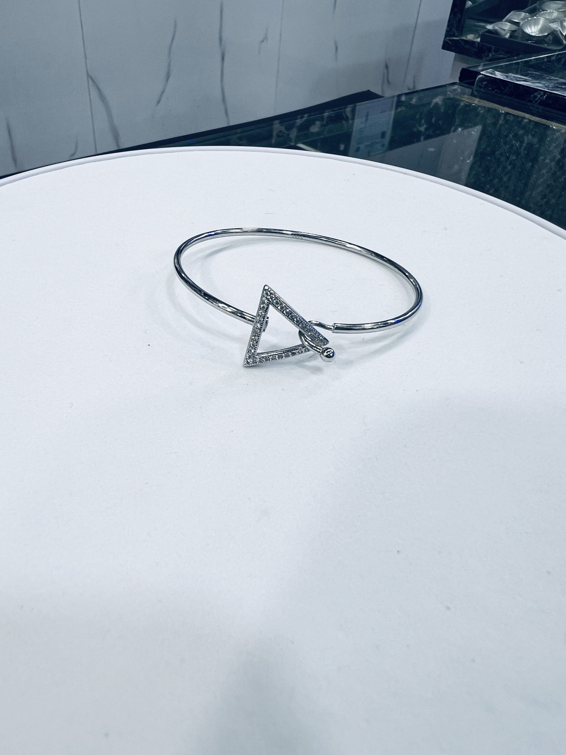 925 Silver Geometric Triangle Bracelet Modern and minimal – this 925 Sterling Silver Bracelet features a sleek open triangle design accented with tiny sparkling stones. Its contemporary style makes it the perfect piece for everyday elegance or a chic night-out look. 🔺✨