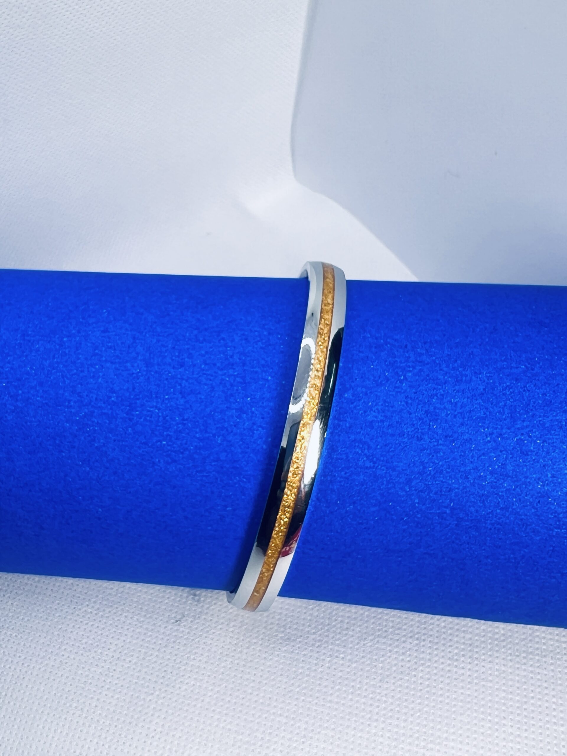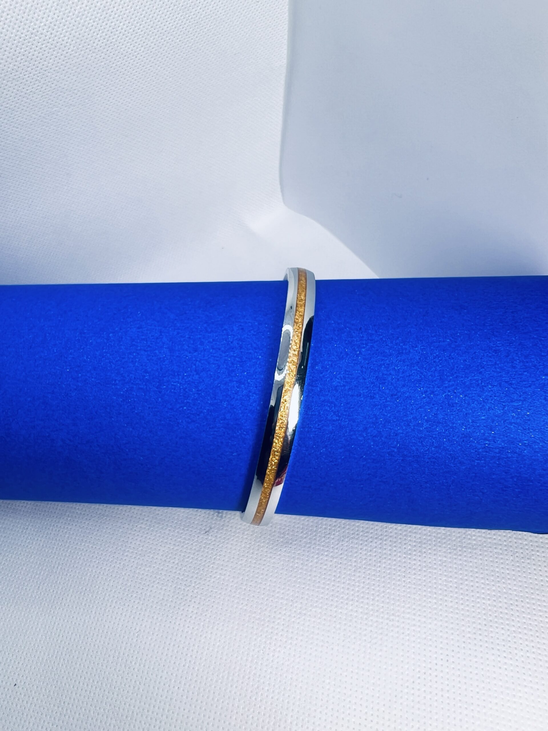 925 Silver Men’s Kada – Dual Tone Classic Design Elevate your style with this 925 sterling silver men’s kada, crafted with a sleek silver polish and highlighted by a subtle golden-tone strip. The minimalist yet bold design makes it an ideal accessory for modern men who appreciate elegance and strength. Durable, skin-friendly, and hallmarked for authenticity, this kada is perfect for both daily wear and special occasions, making it a timeless addition to your jewellery collection.