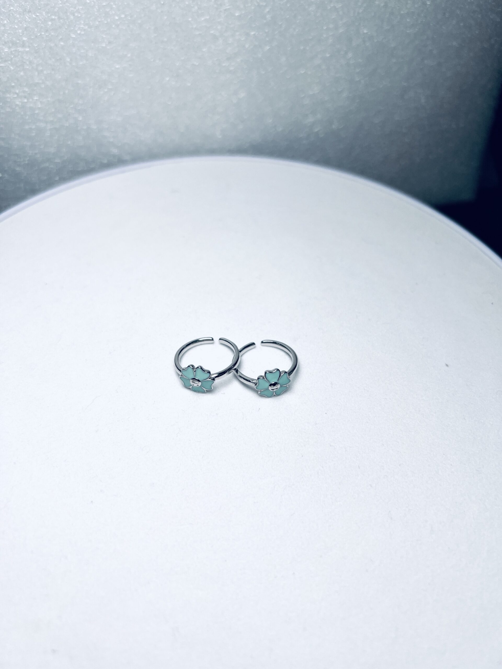 925 Silver Mint Green Flower Toe Rings Bring freshness and charm to your style with these adorable 925 silver toe rings, featuring pretty mint green enamel flowers with a polished silver center. Made from genuine sterling silver, these adjustable toe rings are lightweight, durable, and comfortable for everyday wear. Perfect for summer looks, beach vibes, or festive occasions, this set of 2 toe rings adds a playful yet elegant touch to your jewellery collection.