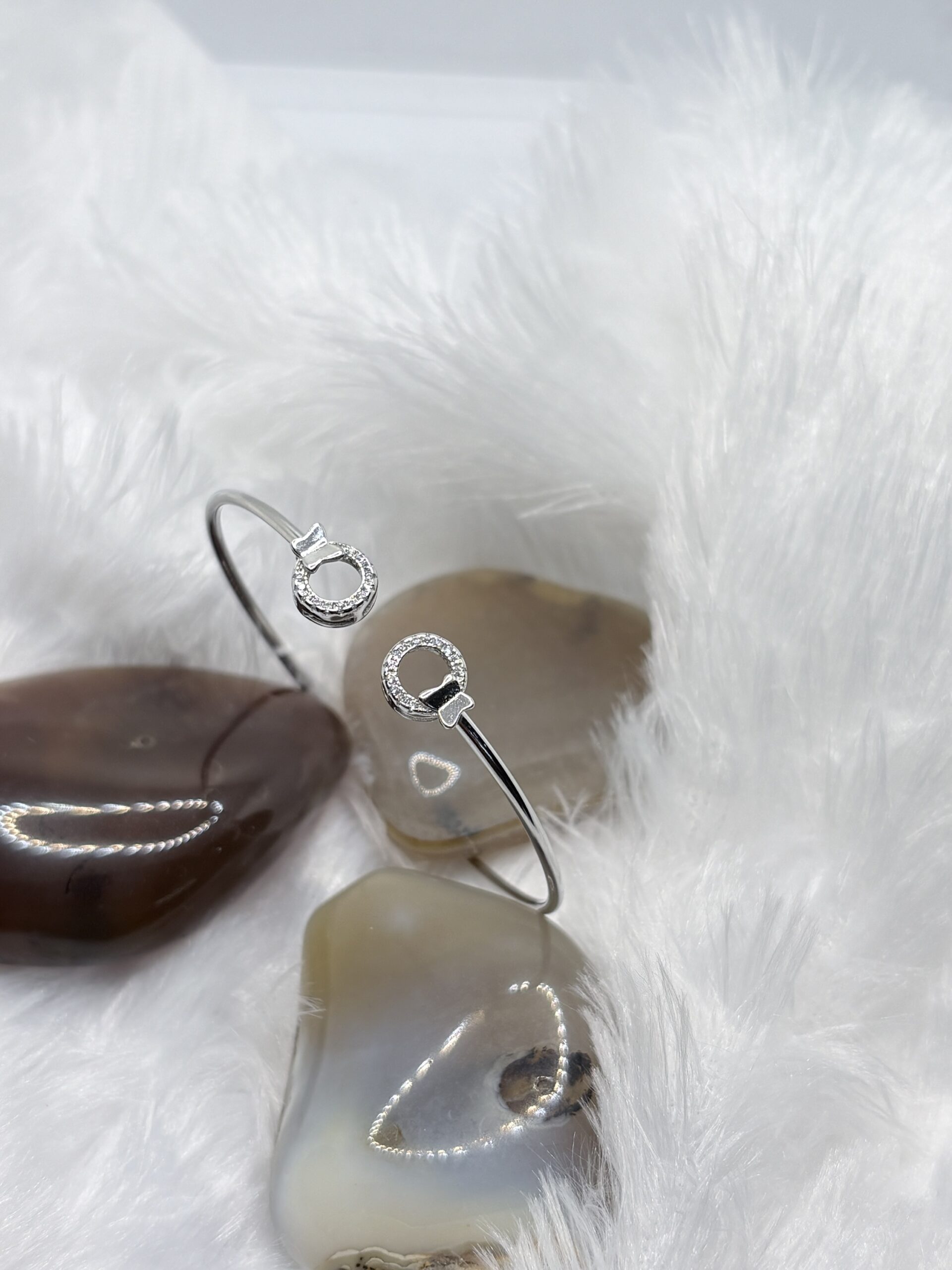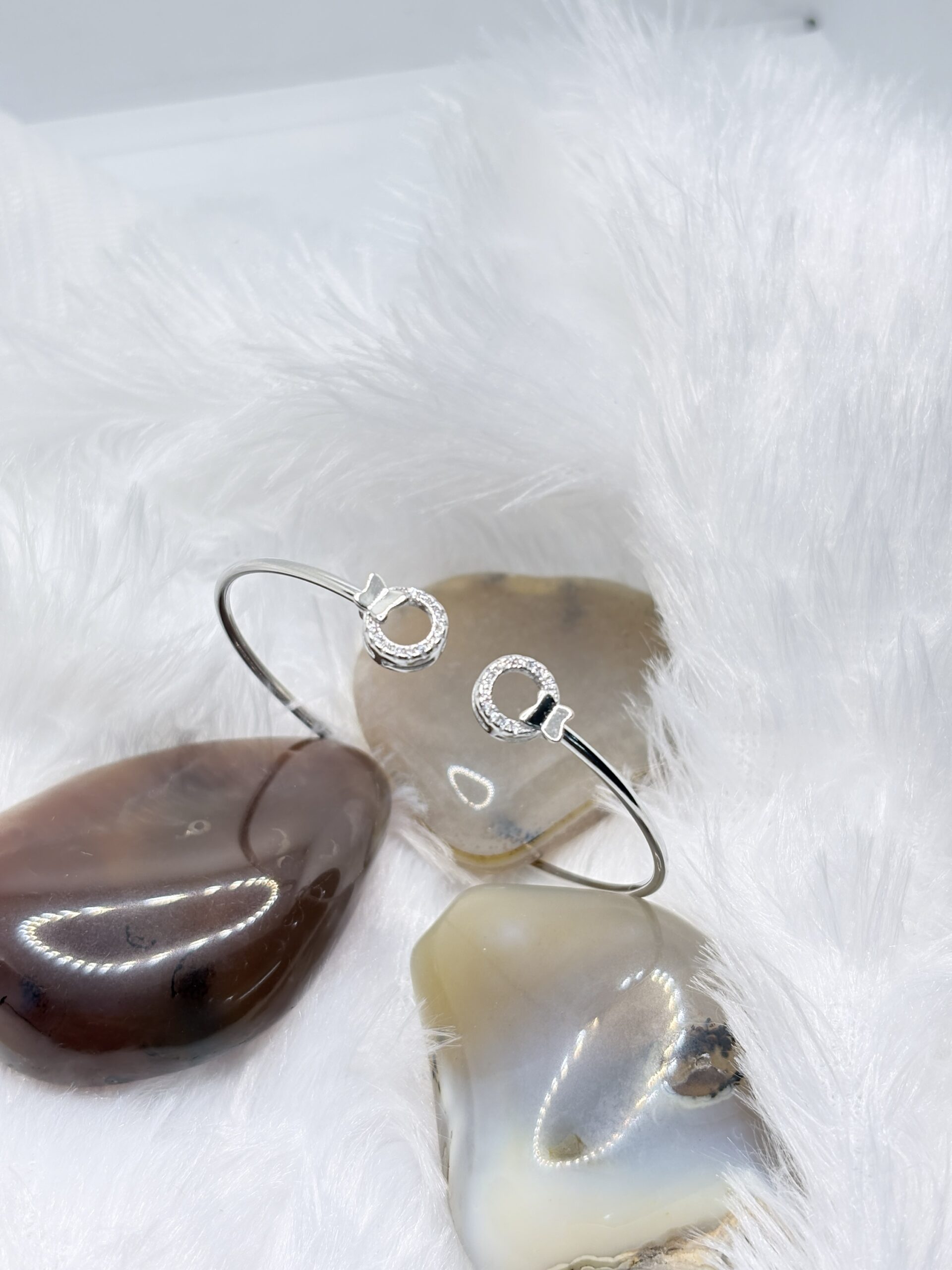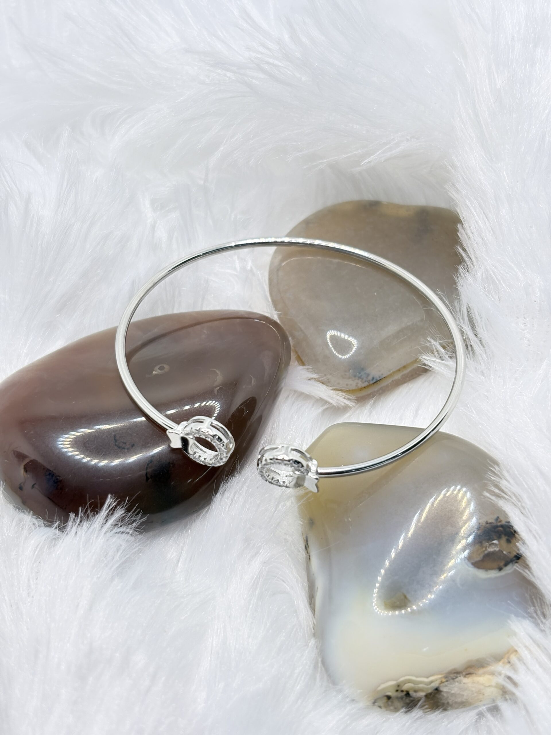 925 Silver Open Kada Bracelet with Dual Stone Tips