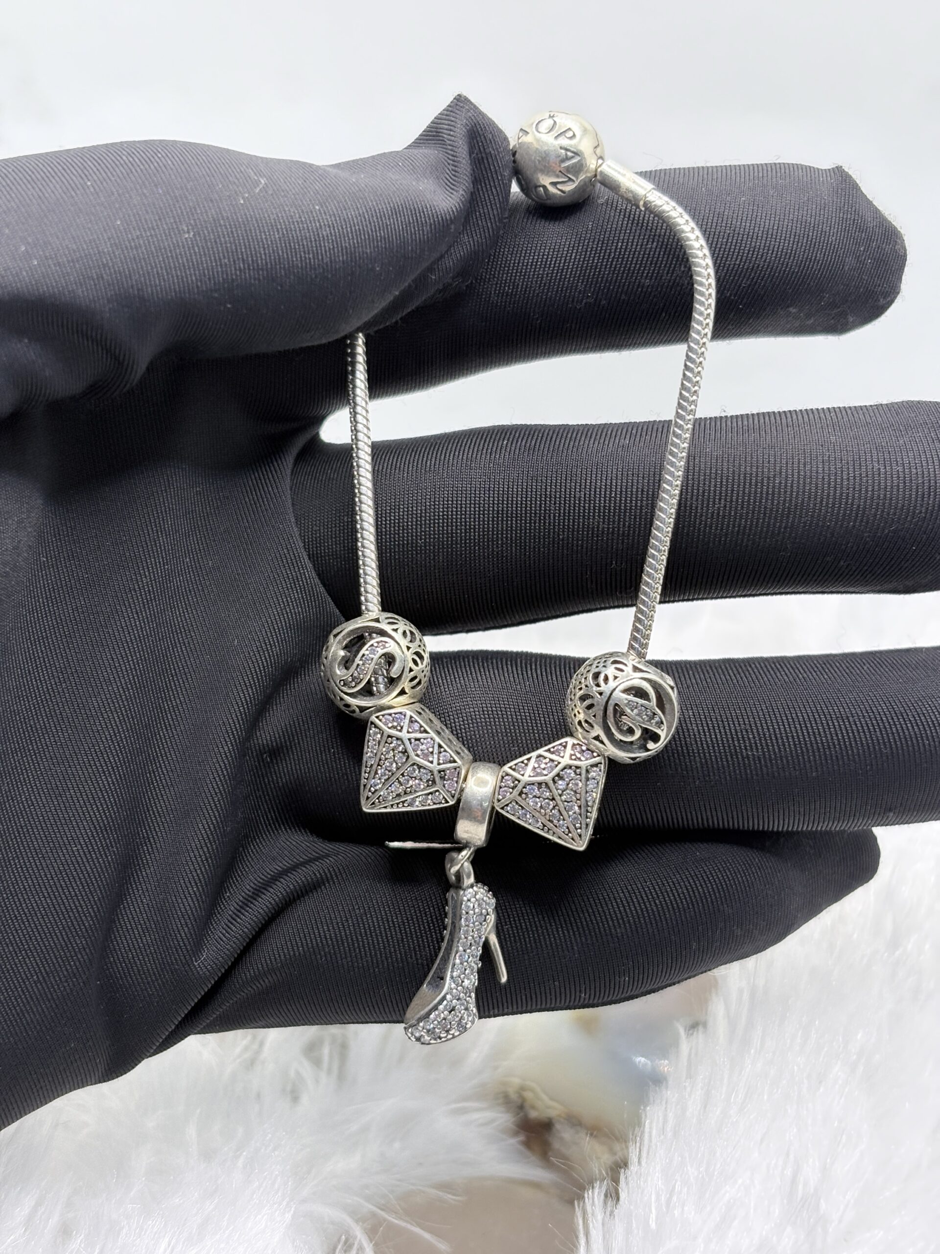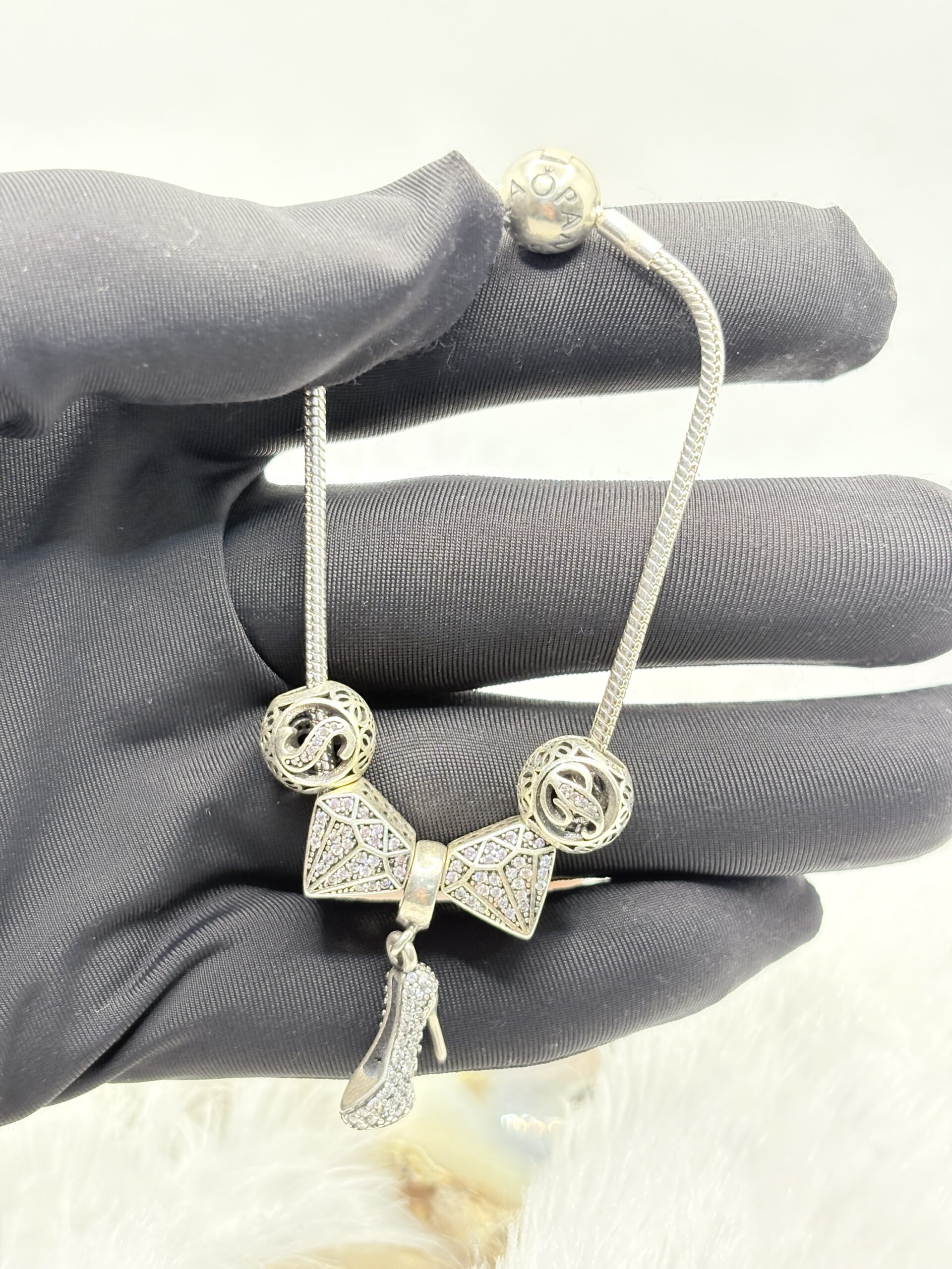 This stunning charm bracelet features a sparkling bow & a chic high-heel pendant — perfect for adding a touch of glamour to your everyday style.