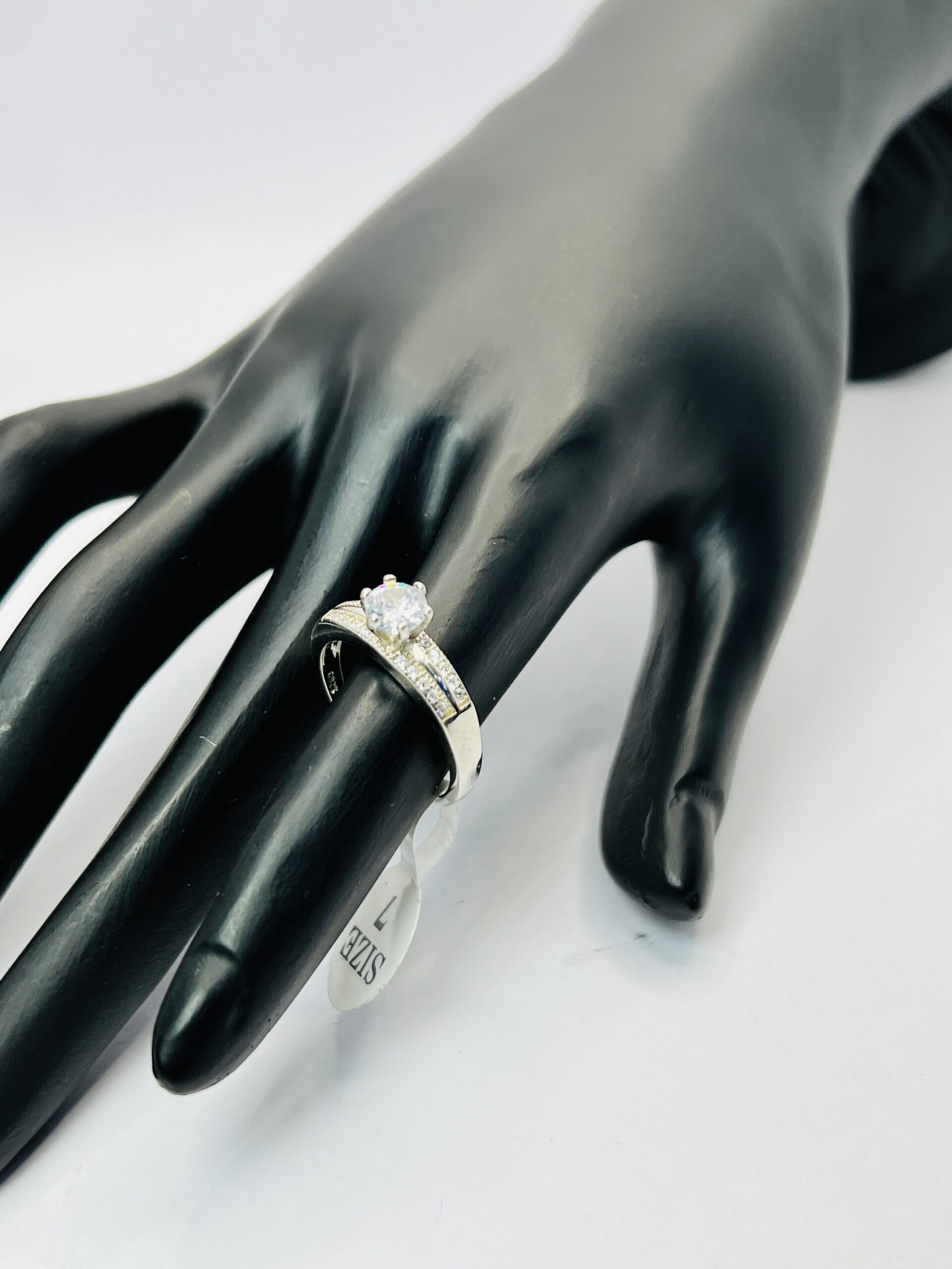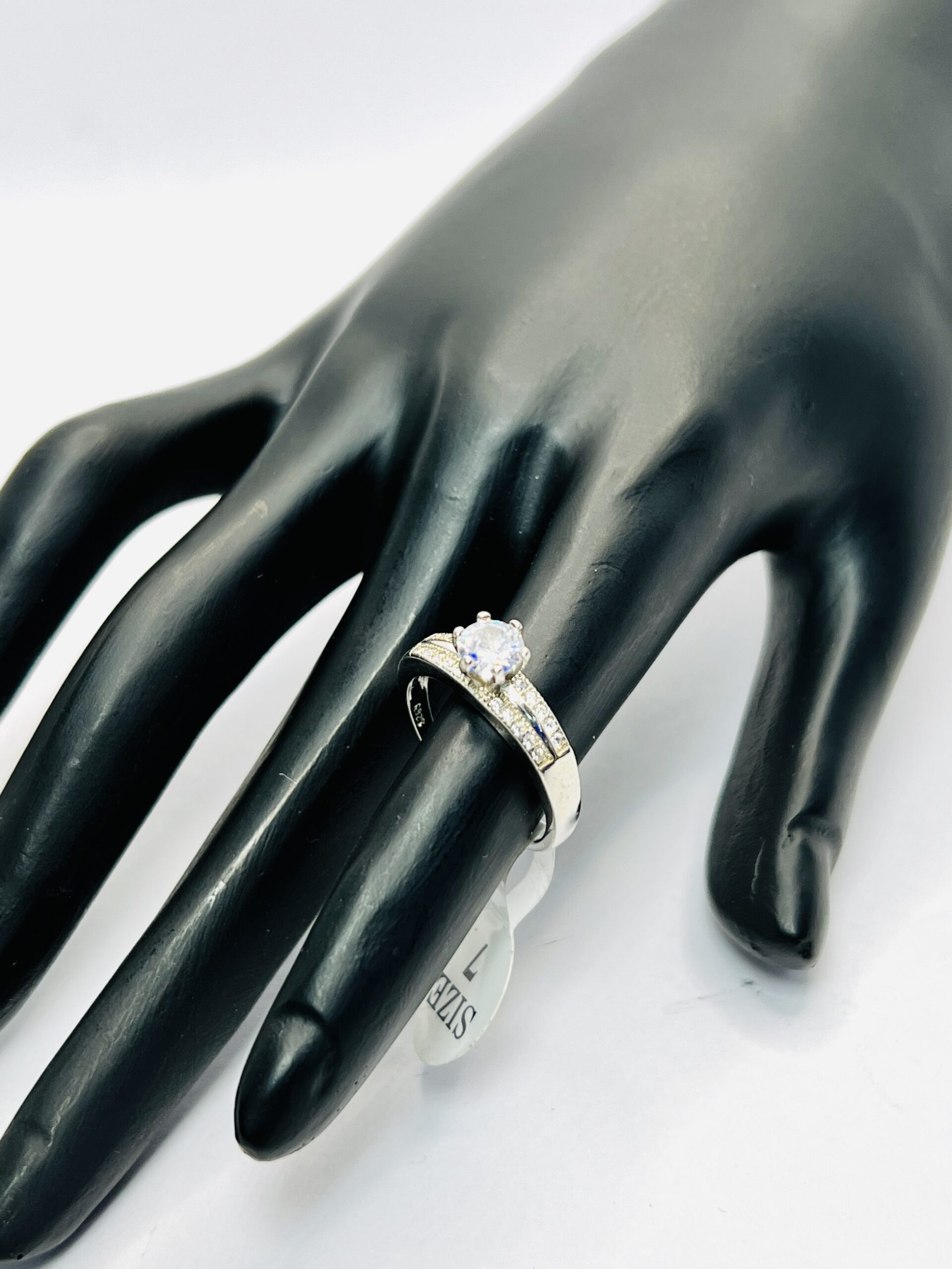 925 sterling silver Ring size 6.5 offers a classic and elegant look. It features a brilliant, round-cut cubic zirconia stone as the centerpiece of the engagement ring. The ring is paired with a matching band, both of which are beautifully adorned with pave-set cubic zirconia stones, adding extra sparkle and brilliance. 925 sterling silver Ring The two rings fit together seamlessly, creating a cohesive and luxurious set perfect for a proposal or as a symbol of commitment.Crafted with high-quality sterling silver, it offers lasting shine and durability. A timeless accessory that complements any style, this ring also makes a thoughtful gift for someone special..by silver godly