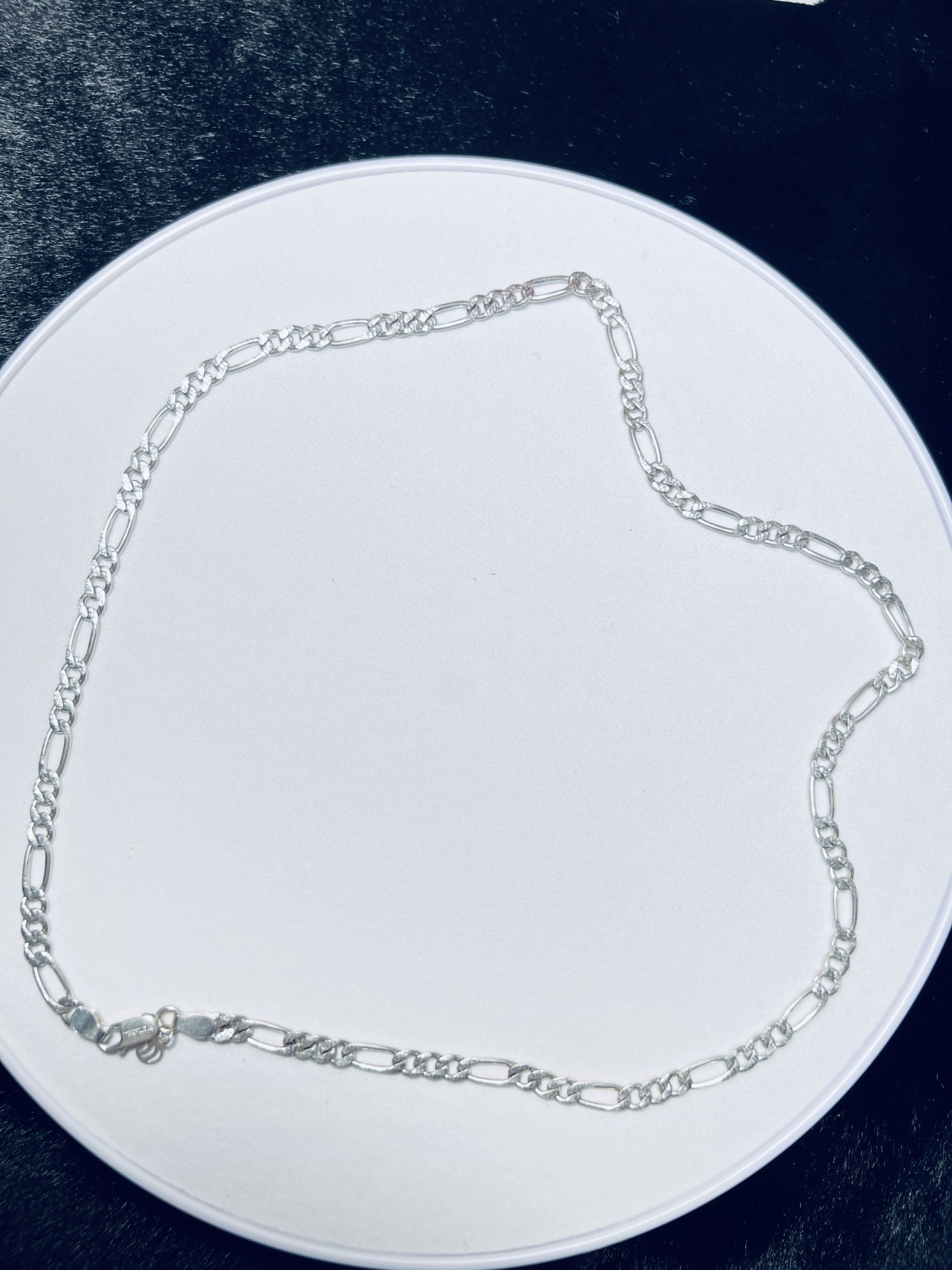 925 Sterling Silver Figaro Chain for Men Upgrade your style with this premium 925 sterling silver men’s chain, designed in a classic Figaro link pattern that blends strength with elegance. The high-polish finish adds a bold shine, making it perfect for both everyday wear and special occasions. Lightweight yet durable, this chain is a timeless accessory that pairs effortlessly with any outfit.