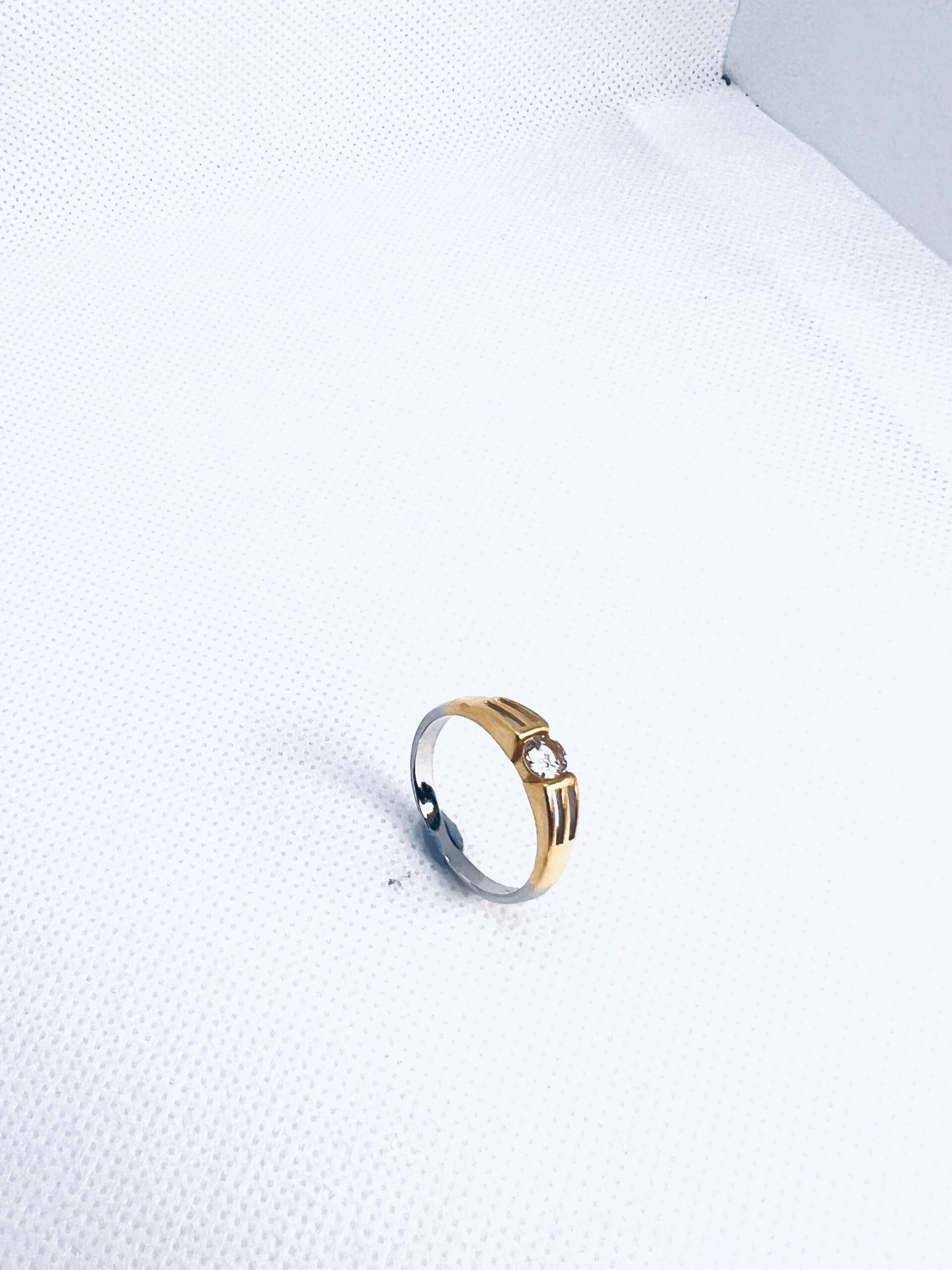 925 Sterling Silver Two-Tone Men’s Ring with Solitaire CZ Crafted from genuine 925 sterling silver, this men’s ring features a bold two-tone design with polished silver and rich gold plating. The centerpiece is a brilliant solitaire cubic zirconia, adding a touch of sophistication and shine. Its modern design with sleek line detailing makes it perfect for daily wear or special occasions. Durable, stylish, and masculine – this ring is an ideal gift or a standout addition to any collection.They are a versatile addition to any jewelry collection.