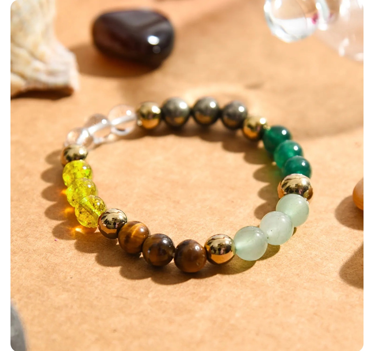 Green Aventurine & Jade – Known as the “Stone of Opportunity,” attracts luck and financial growth.
