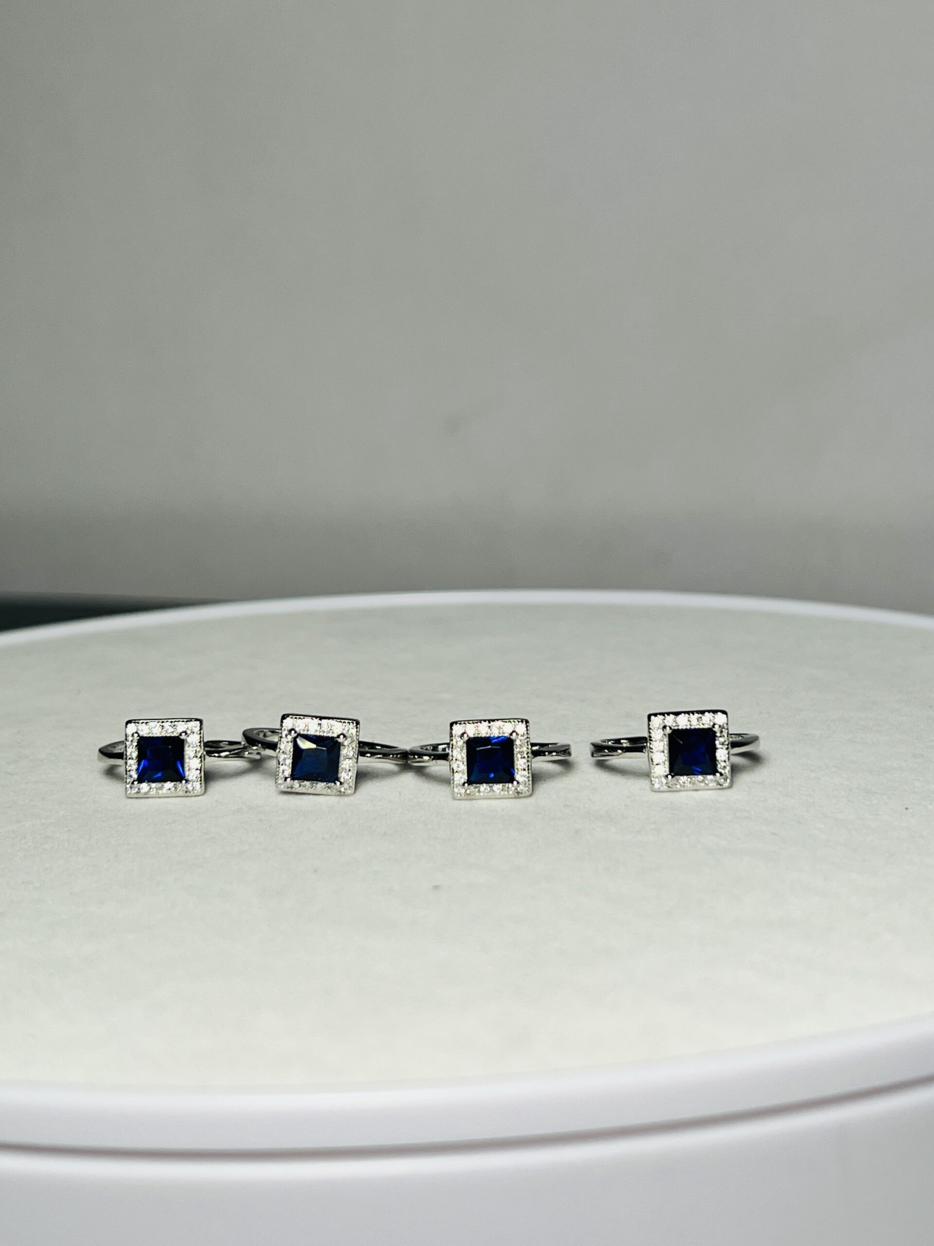 Italian Silver Toe Ring with Blue Square Stone Add a touch of luxury to your everyday style with our 925 Italian Silver Toe Ring, beautifully designed with a stunning deep blue square stone at the center. Surrounded by sparkling CZ detailing, this toe ring offers a premium, classy look that elevates any outfit—traditional or western.