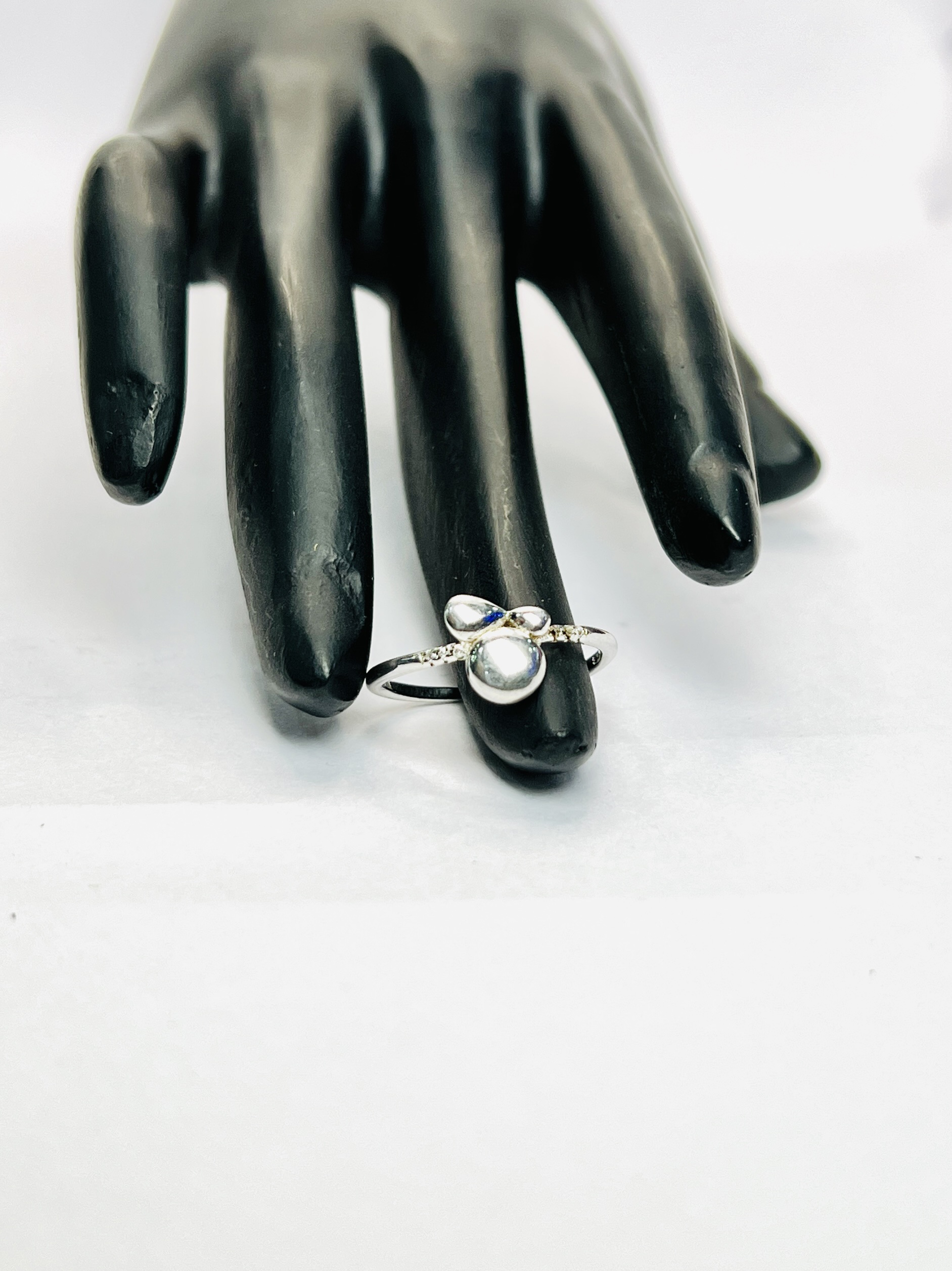 Modern Silver Ring size 7.5 This artistic 925 sterling silver ring for women features a unique, modern design. The centerpiece is a cluster of smooth, polished silver orbs that resemble liquid metal or dewdrops. The sleek band is accented with a few tiny, sparkling stones, adding a subtle touch of glamour to the organic, sculptural shape. This ring is a perfect statement piece for those who appreciate contemporary jewelry with a creative, abstract flair.