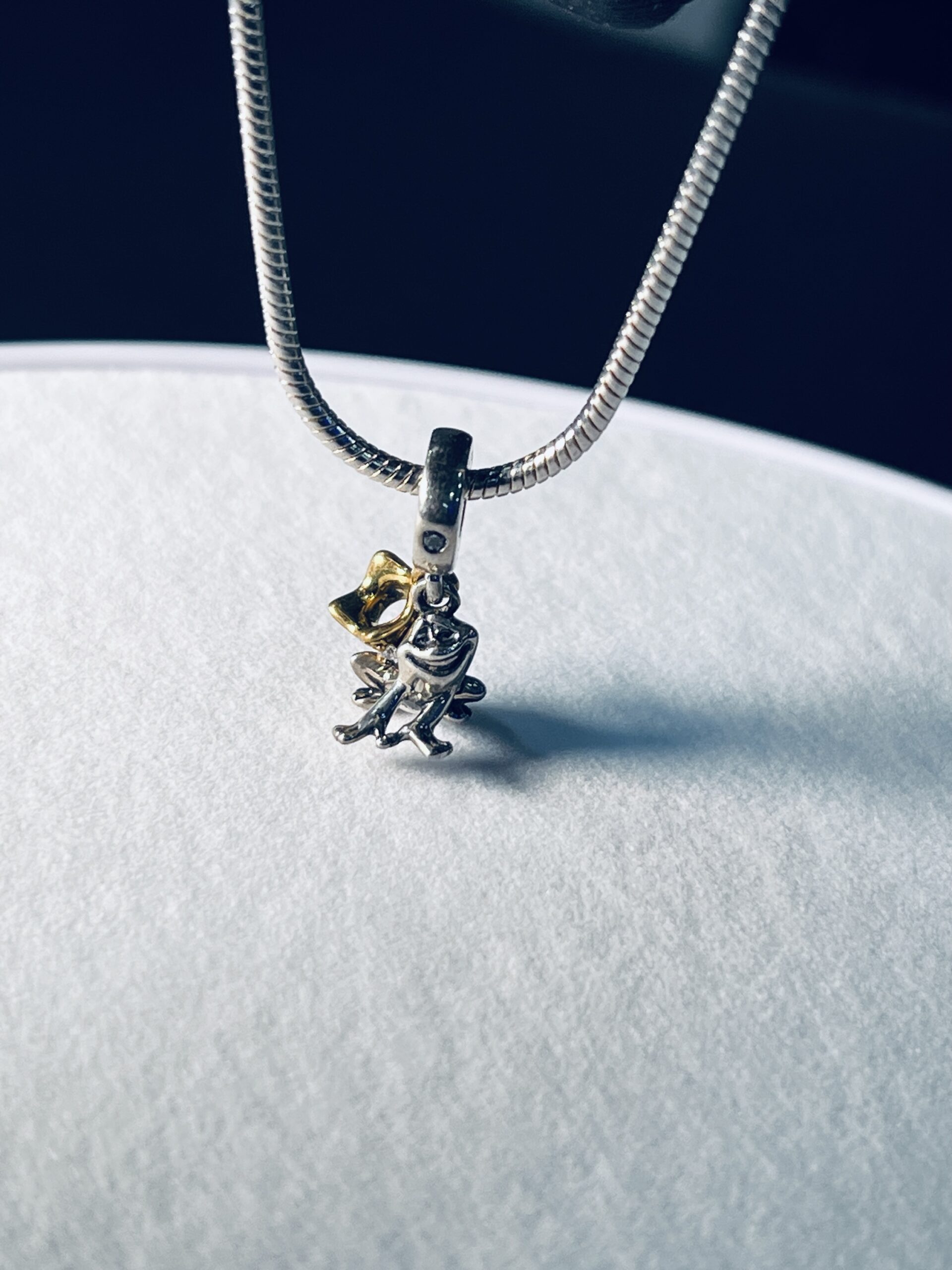 Silver Frog 925 Silver Charm Bracelet This unique 925 silver charm bracelet features a classic snake chain and a playful, fully silver frog charm. The frog is detailed in polished silver and wears a charming, silver-plated crown. This whimsical piece adds a touch of personality and fun to your wrist, making it a perfect accessory for both everyday wear and special occasions.