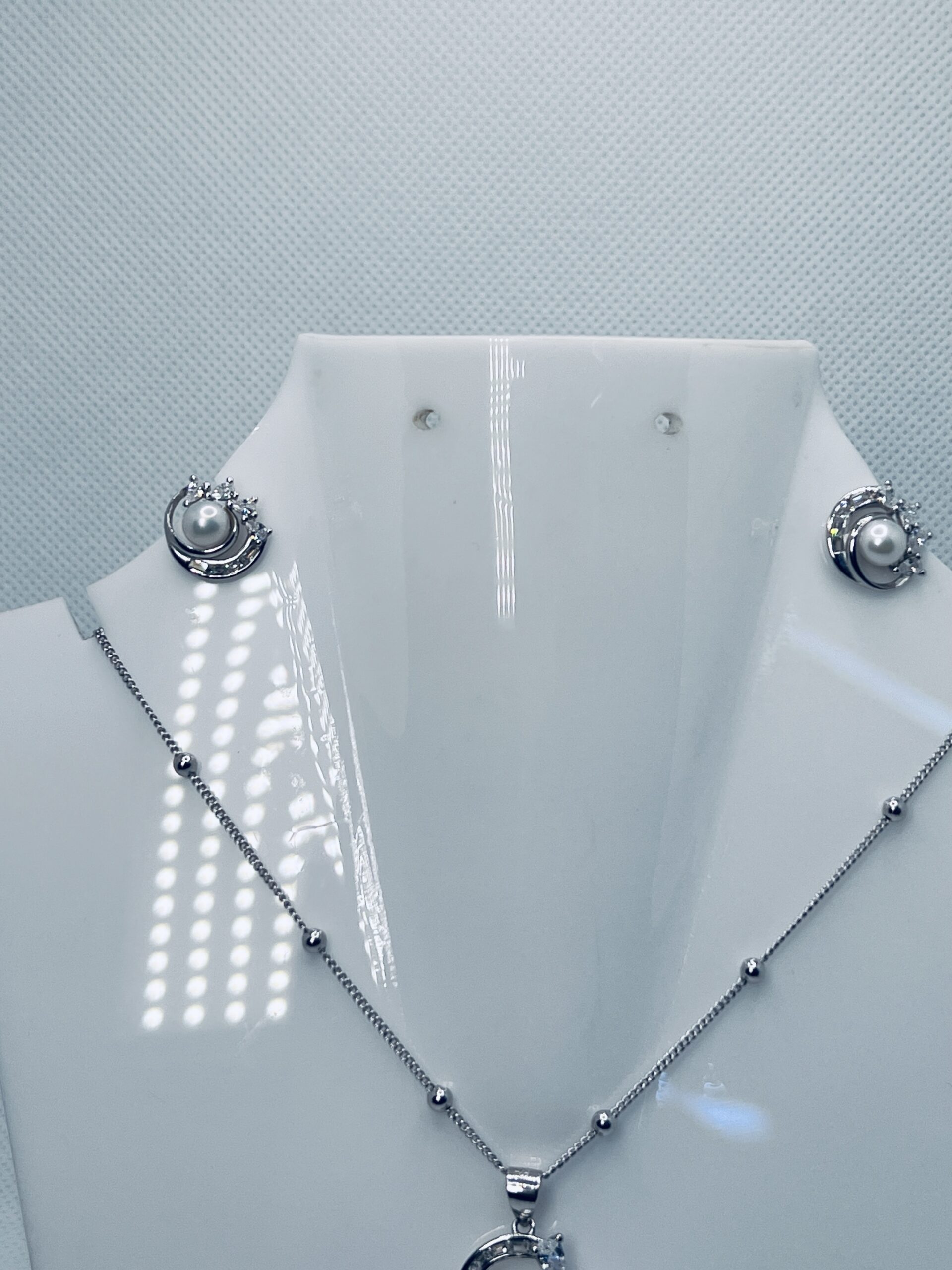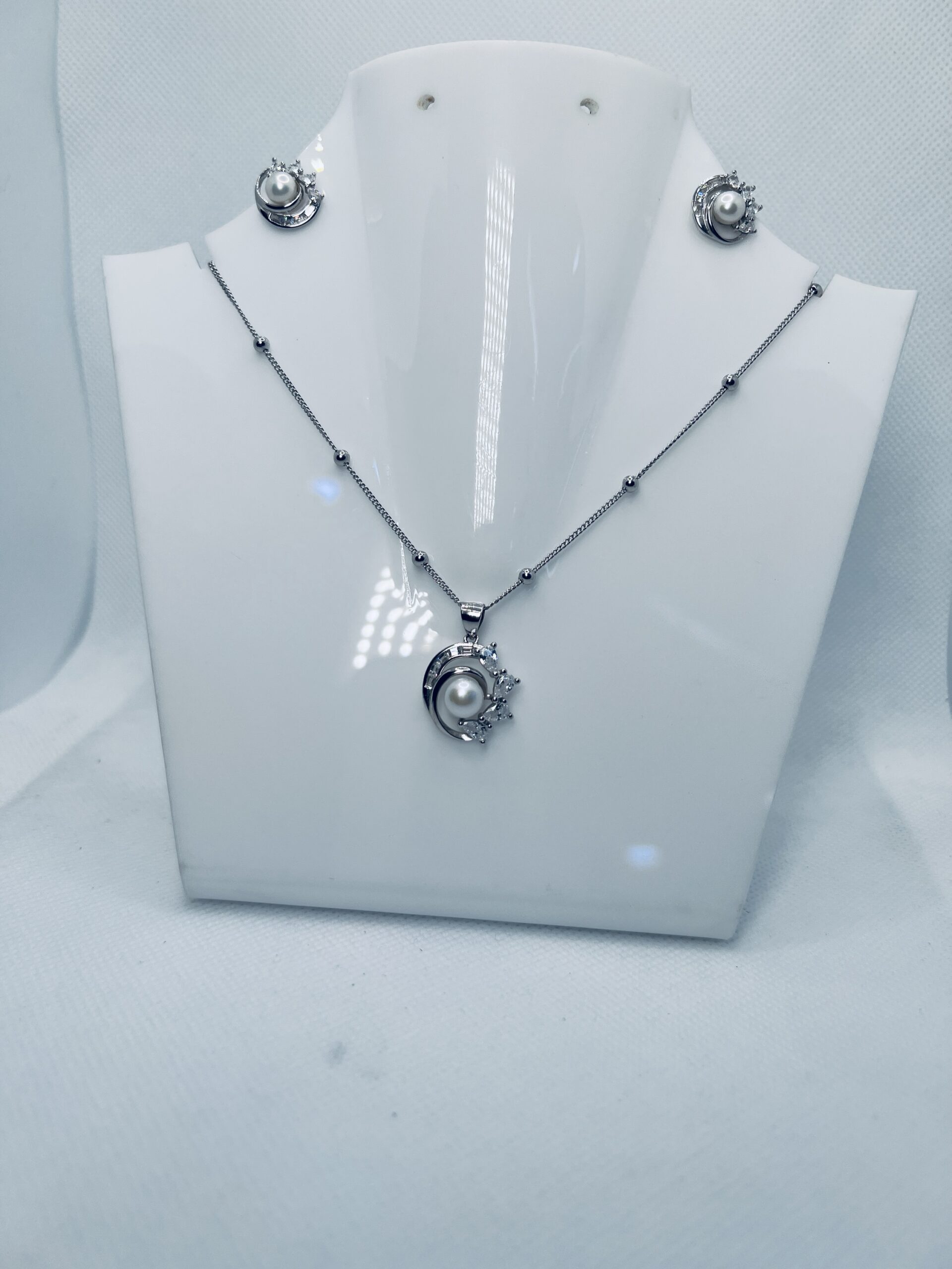 Silver Pearl Pendant Necklace Earrings Set for Women