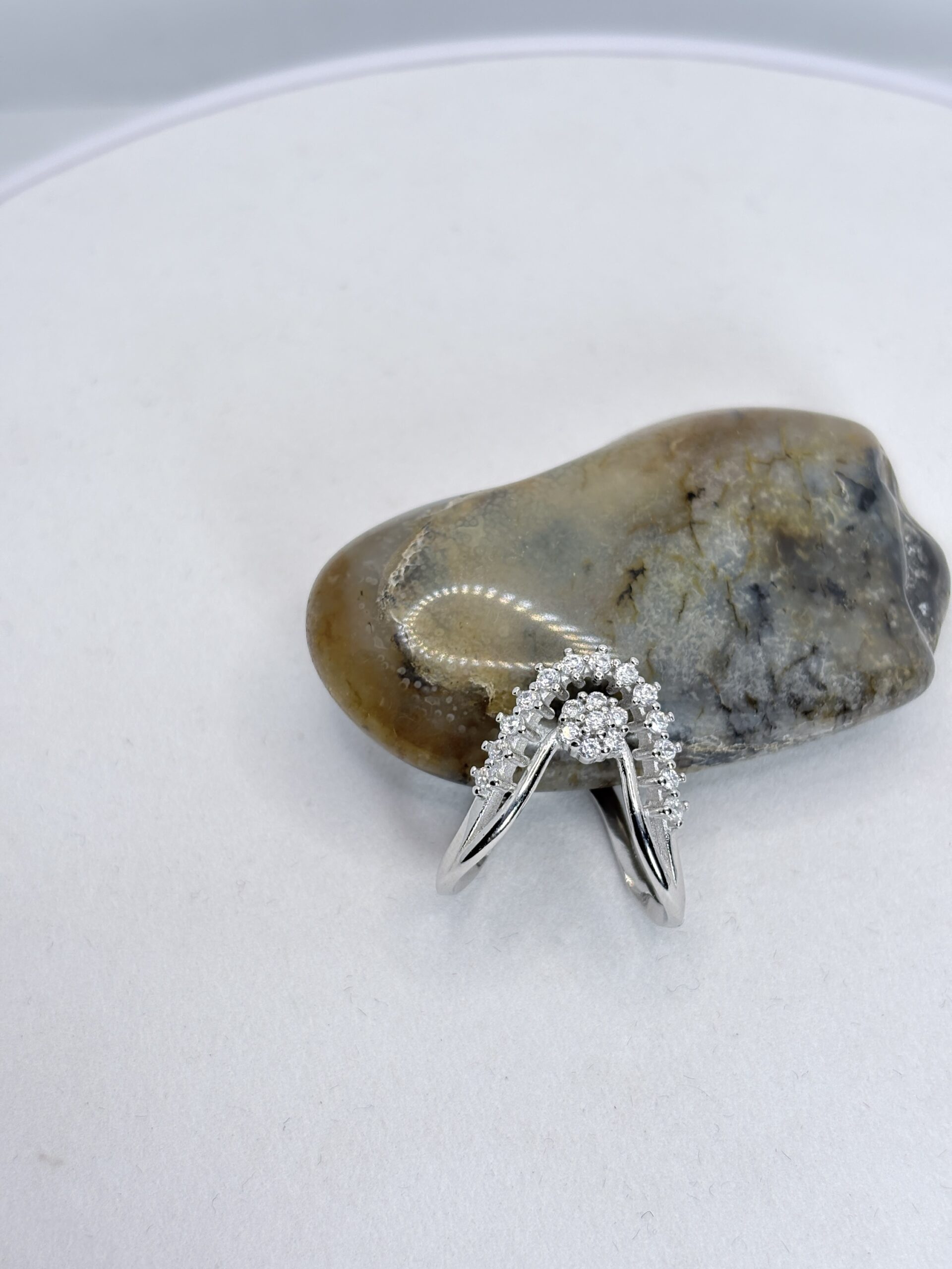Silver V-Shape Vanki Ring A modern V-shaped vanki-inspired ring crafted in pure 925 sterling silver, beautifully accented with sparkling cubic zirconia stones. Designed to add elegance to every finger, perfect for daily wear or special occasions.