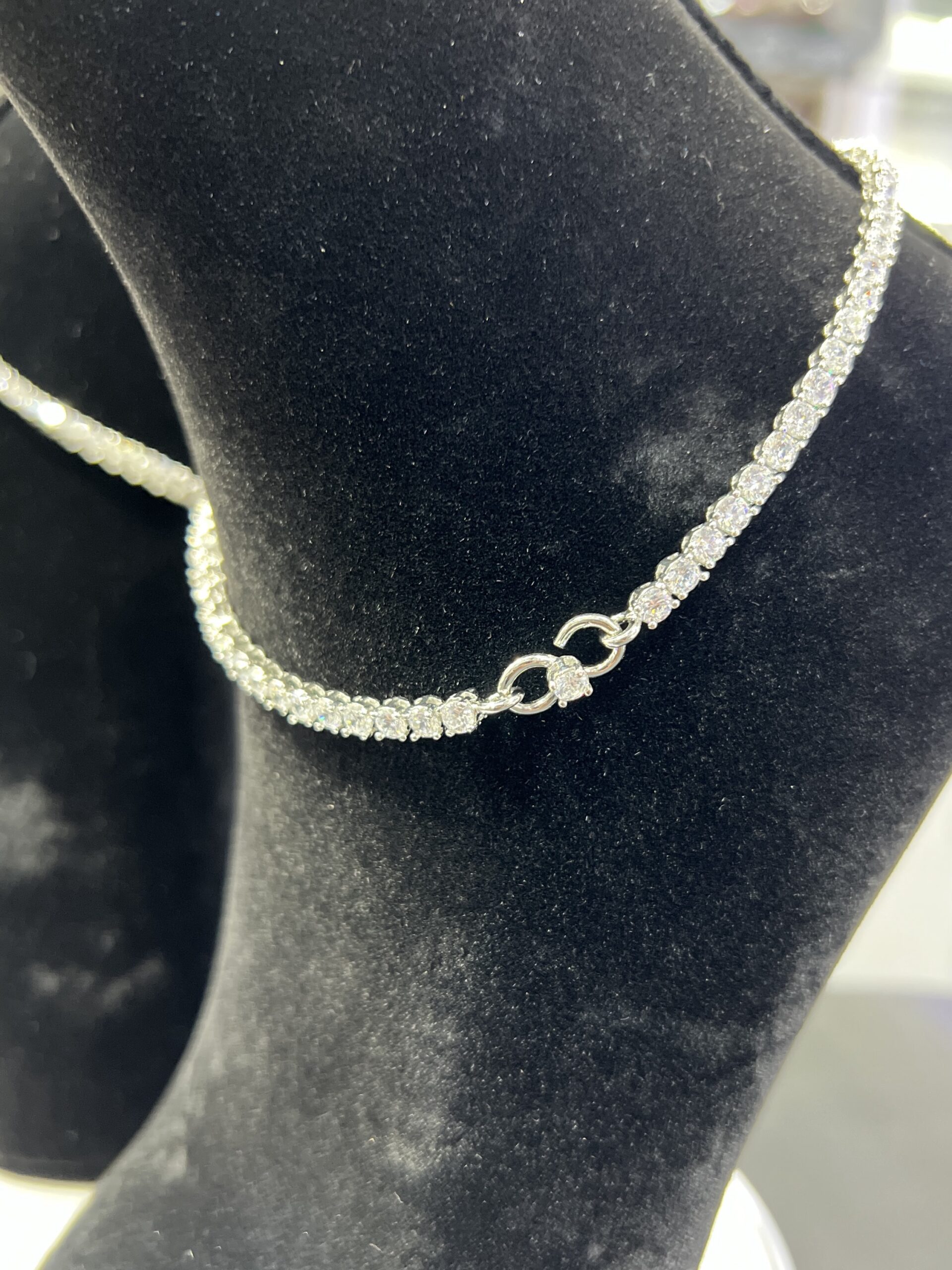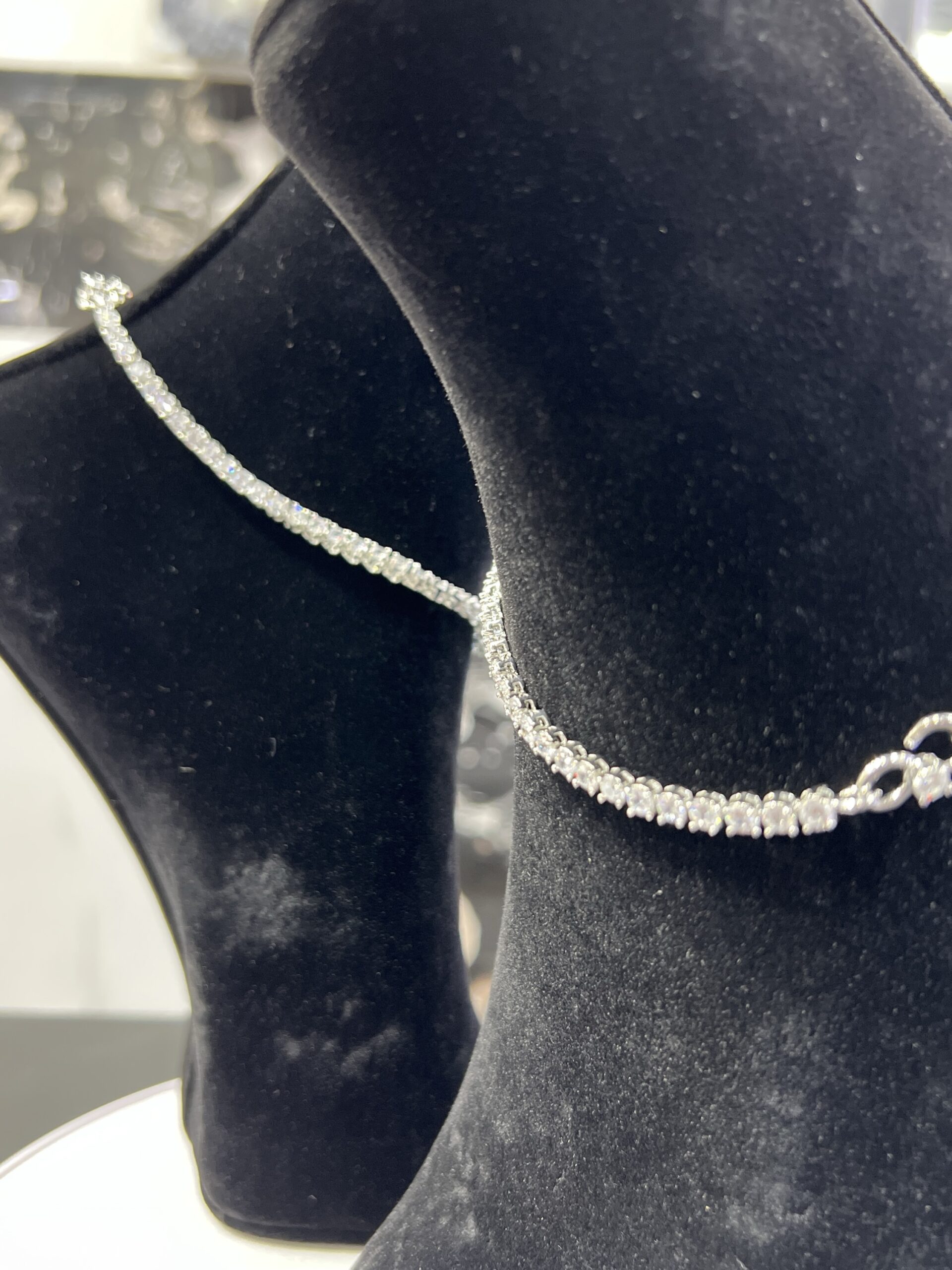 The “Endless Sparkle” Sterling Silver Anklet This elegant 925 sterling silver anklet features a classic and glamorous design. It’s a full-circle tennis style, with a continuous line of brilliant, round-cut cubic zirconia stones. Each stone is meticulously set to catch the light from every angle, creating a stunning and uninterrupted flow of sparkle. The secure infinity clasp provides both a safe closure and a polished finish. This anklet is a timeless accessory that adds a touch of red-carpet glamour to any look.